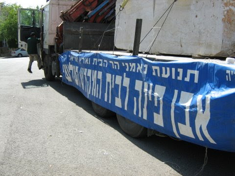 – Arak-arakan rombongan Yahudi saat itu dipimpin oleh truk batu pondasi, yang dihiasi bendera Zionis Israel, juga bendera bintang David dan miniatur Kuil. Terompet perak untuk peribadatan masa depan sengaja ditiupkan guna mengiringi kegiatan tersebut. Batu pondasi tersebut dipersembahkan kepada ummat Yahudi dan seluruh masyarakat dunia untuk pertama-kalinya, sejak penghancuran Kuil Suci ke-2 pada tahun 70M (silakan klik tautan berikut untuk keterangan lebih detil)